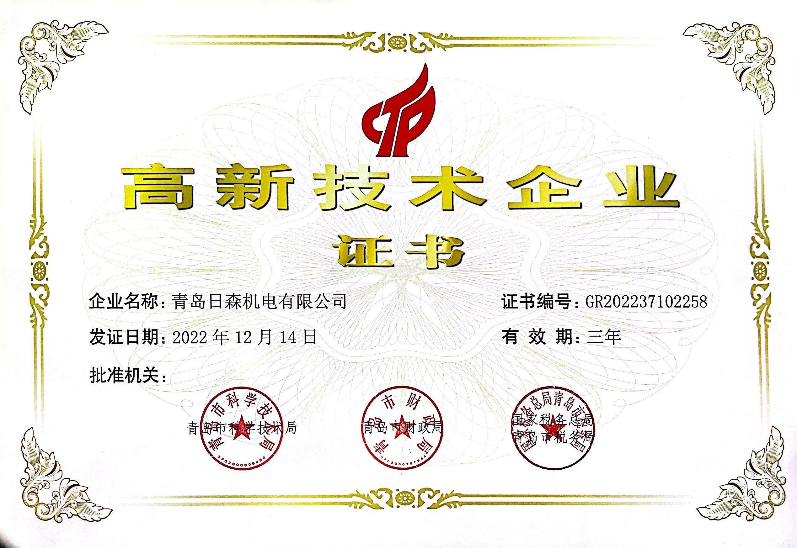 高新技術企業(yè)證書