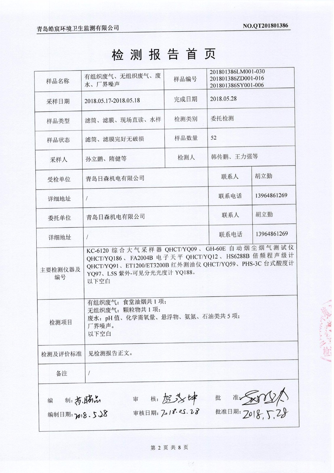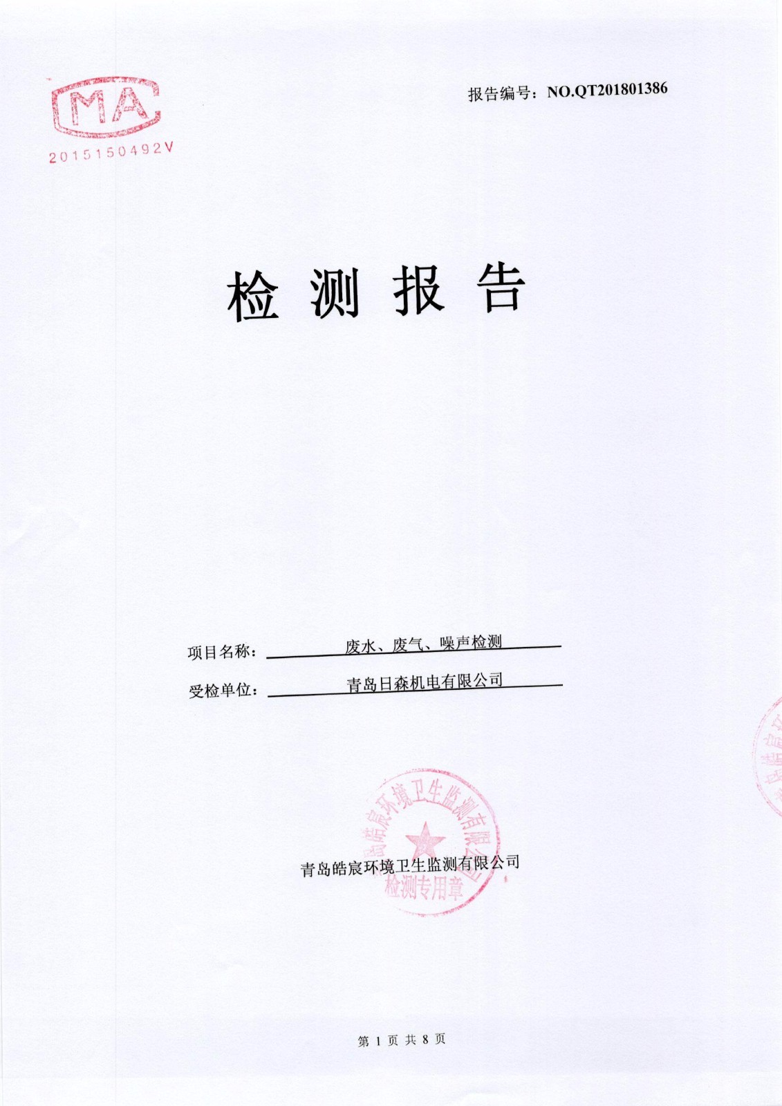 關于日森機電有限公司廢水、廢氣、噪聲監(jiān)測報告的公示